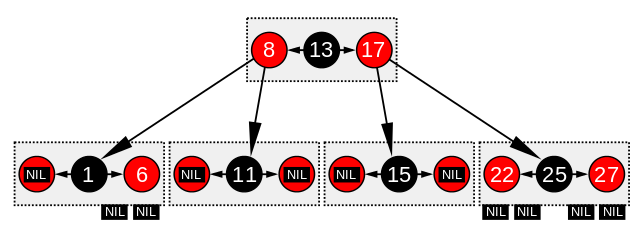 balanceB (TR (TR a x b) y c) z d = TR (TB a x b) y (TB c z d) balanceB (TR a x (TR b y c)) z d = TR (TB a x b) y (TB c z d) balanceB a x (TR (TR b y c) z d) = TR (TB a x b) y (TB c z d) balanceB a x (TR b y (TR c z d)) = TR (TB a x b) y (TB c z d)