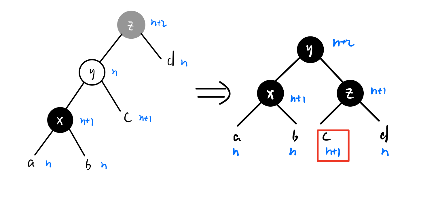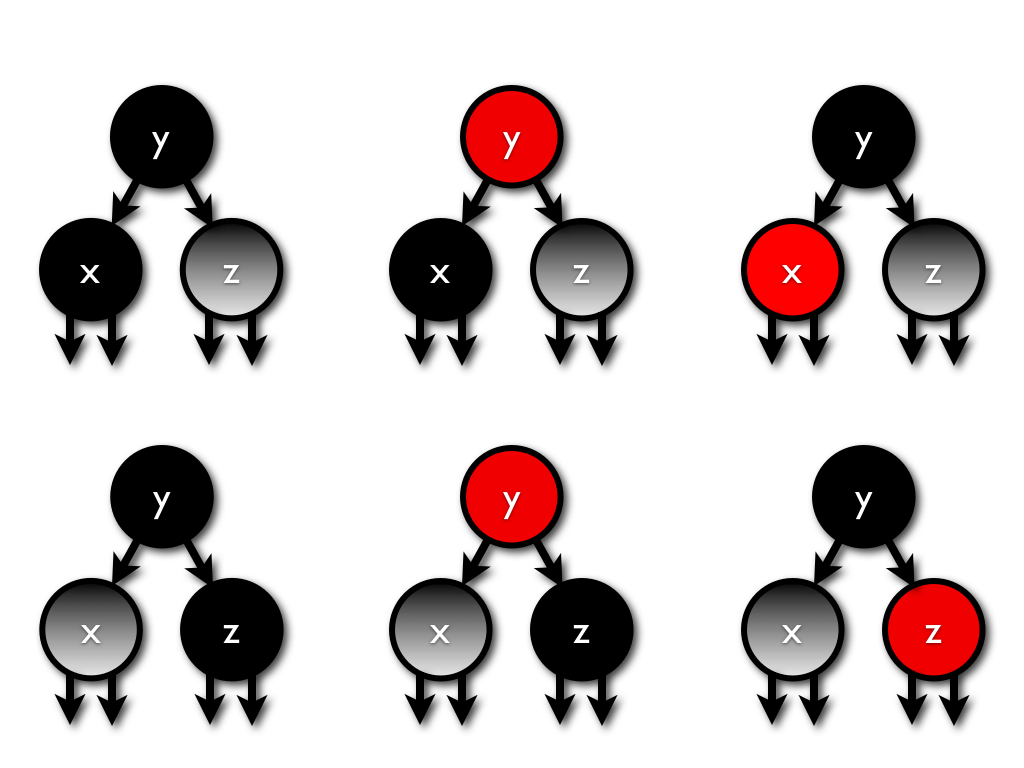 对于性质2的破坏(出现连续Red),显然有且仅有4种情况:左左、左右、右左、右右。